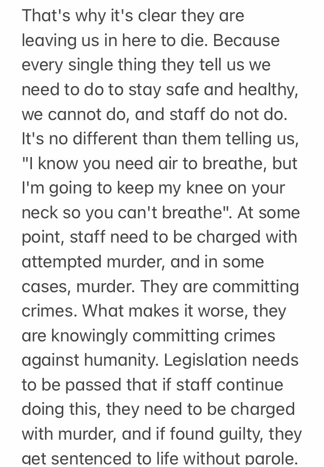 We received another message from an incarcerated individual at ERDCC regarding Covid-19, social distancing, and more.