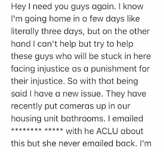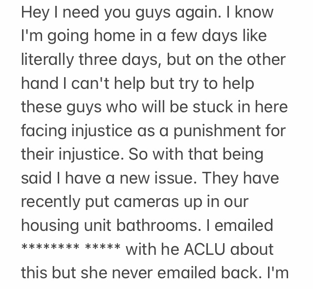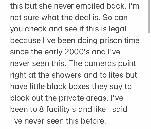 We received this email from an incarcerated man at Algoa Correctional Center in Jefferson City. Cameras in the bathrooms?