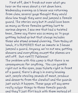 We received the following email from an incarcerated individual at SECC/Charleston regarding the incident last week when several staff members were assaulted.