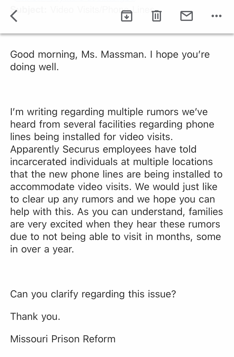 This would be great!! But the phone calls are getting HORRIBLE! For instance at FCC treatment there are 45 guys in one house (NO SOCIAL DISTANCE) with 2 phones, they are only allowed to use the phone after class hours for 3 hours… It's supposed to be 15 min. calls But MANY Inmates have multiple pins and monopolize the phone for an hour so many don't get to call family thus fights are breaking out some pretty bad taking guys into the showers and beating the crap out of each other. If they would just realize everyone needs to connect with family this is their lifeline with no visits and treat others the way they wanted to be treated But NO