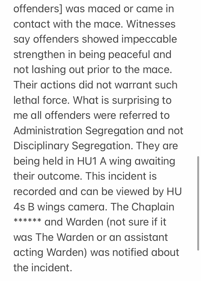 We were told of an incident on 2/28 of some individuals at ERDCC being maced. Today we received information about an assault on a corrections officer. Here’s information we received on both incidents from an incarcerated individual. The facility is no longer on lockdown from what we’ve been told.