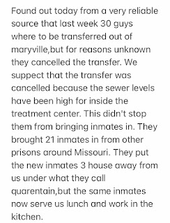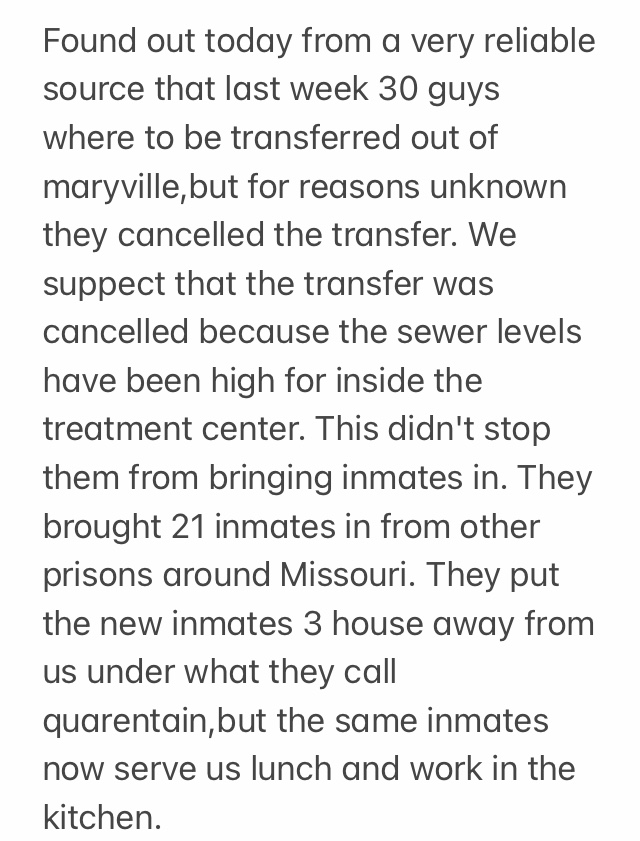 Here’s another message we received from an incarcerated individual at MTC regarding transfers into the facility, “quarantined” individuals working in the kitchen, and general problems with the “treatment” program. It’s all about money for the DOC.