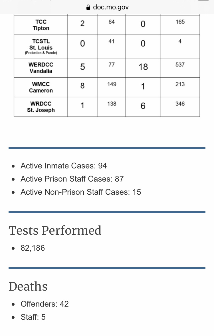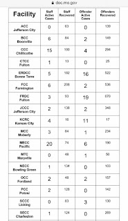 After an increase of 32 positive Covid cases over the weekend, it would be great if MoDOC would have updated their Covid data on their website but at the time this is being written, no update since yesterday.