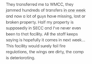 We received this email from an incarcerated man who was transferred to WMCC last week. We’ve heard so many stories about lost property. It’s an ongoing issue within MoDOC. We’ve also made several attempts at getting the numbers of transfers that took place (in the past, no names included; just numbers) and the Department of Corrections refuses to turn them over.